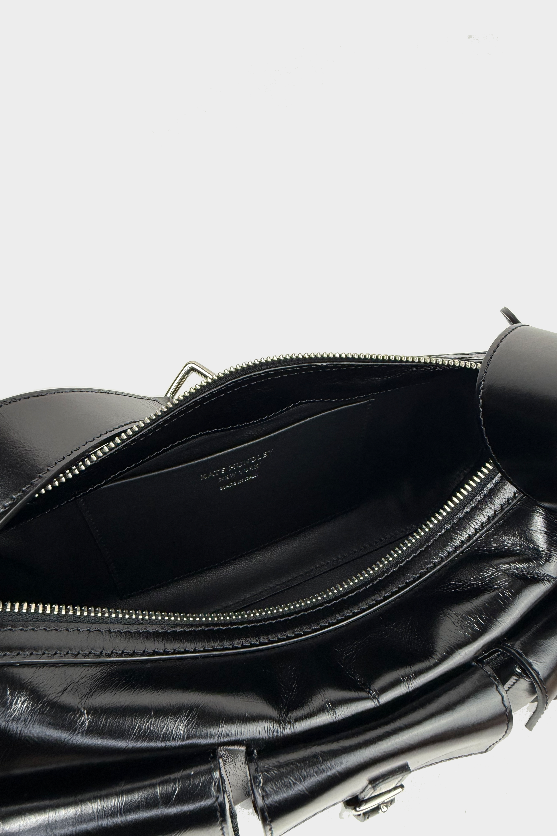 Inspired by the pure functionality of vintage tool bags, the Anjelica Shoulder Bag features utilitarian hardware, buckled pockets, and a lightly crinkled calf leather. Adjustable strap, zipper closure, and interior slip pocket.